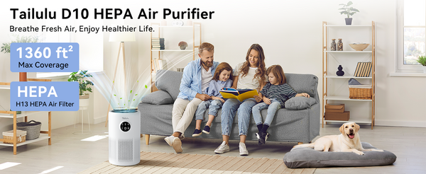 - [ High Efficient Air Purifier] Tailulu D10 air purifier for home pets uses a true H13 HEPA filter and 360° air inlets, which could effectively filter different kinds of air pollutants and create a fresher and cleaner environment. This air purifier for home covers an area of up to 1360 ft². Perfect choice for those who want to improve indoor air quality.