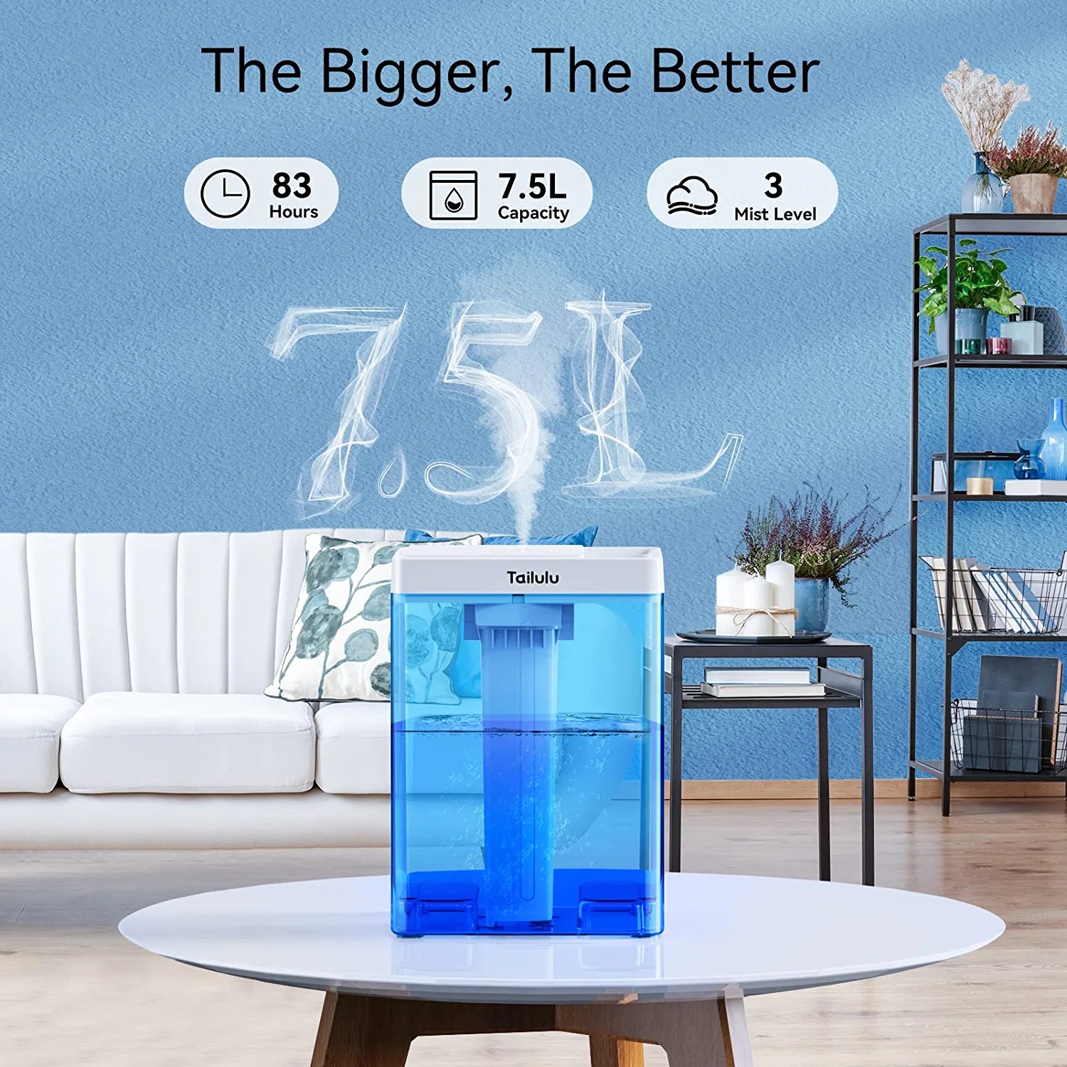 Tailulu 7.5L Humidifiers for Bedroom Large Room, 1.98 Gal Top Fill Cool Mist Air Humidifier for Baby Plants Home