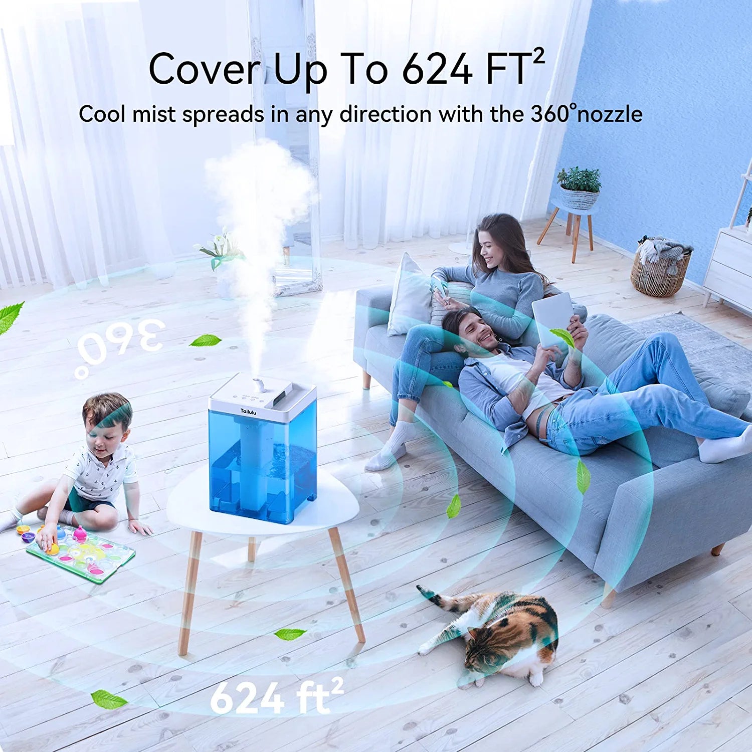 - 【Larger Tank, Longer Lasting】With a 7.5L water tank for the large room, the air humidifier sends out fine mist for 83 hours on a single fill! You can enjoy a whole night's sleep, which frees you from refilling water frequently. The large humidifier covers rooms up to 624 FT². Perfect for moisturizing skin, baby nurseries, plants, and pets.