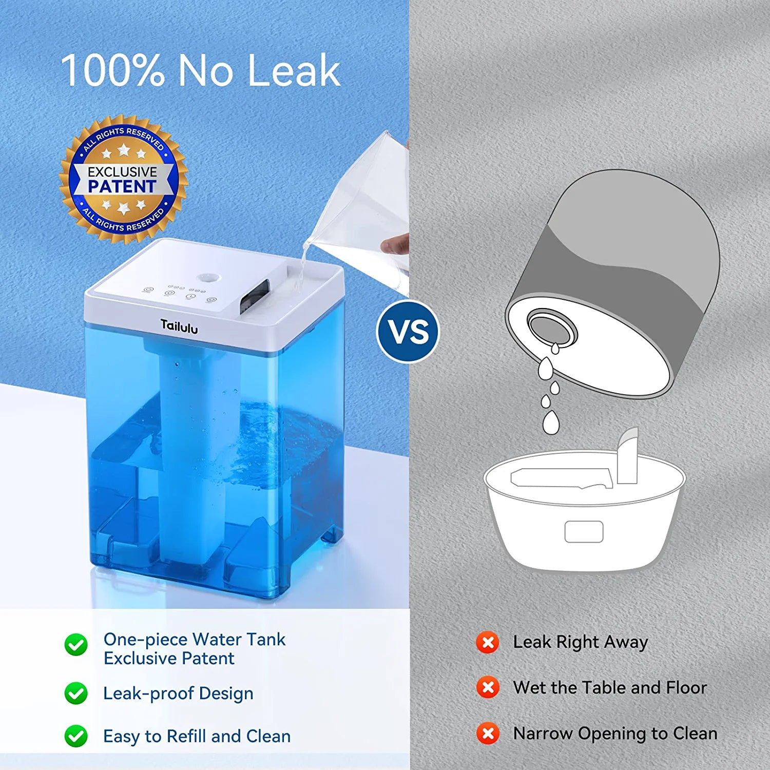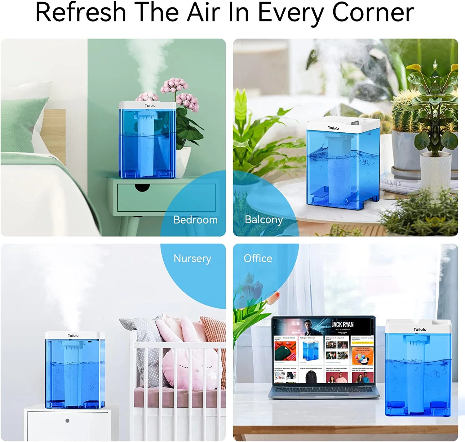 - 【Top Fill & No Leakage】Tailulu bedroom humidifier features a convenient top-fill design and 8.2 inches wide opening for quick refills and easy cleaning. Adopt reliable construction of a one-piece water tank, ensuring the plant humidifier is watertight and durable to use for ages. No worry about damaging your furniture or floor anymore.